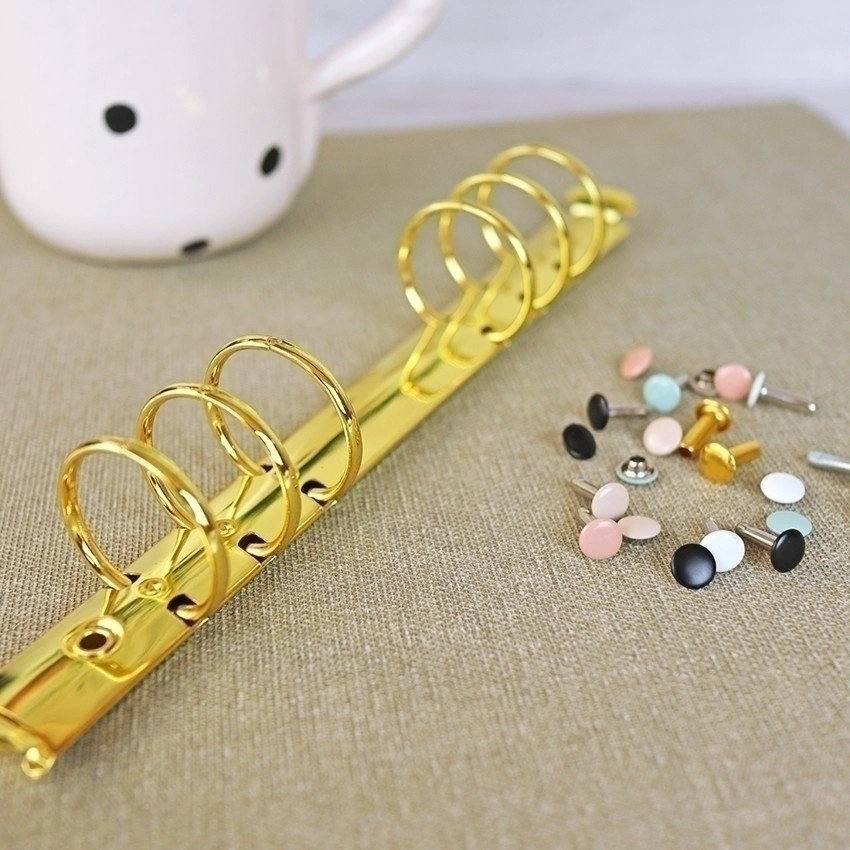 El mecanismo de 6 anillas A5 Oro es el elemento imprescindible para fabricar tu propia agenda, libreta o álbum desde cero.